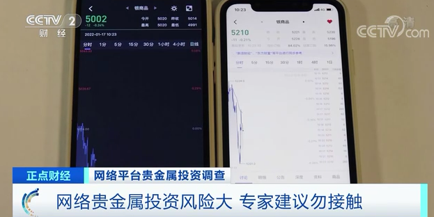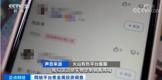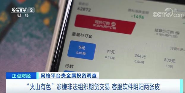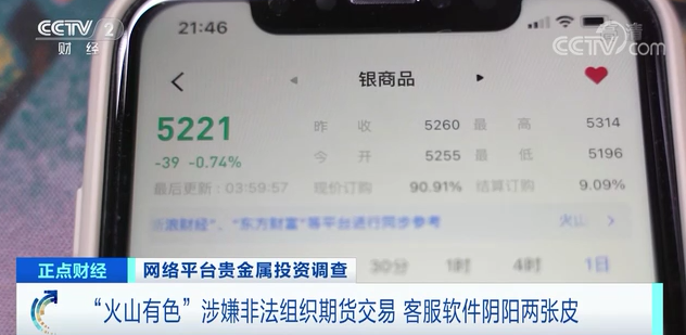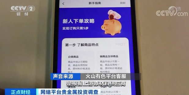 “穷到欠了一债?试试五元投资贵金属,2小时改变你的账户余额。”这是网上常能看到的广告宣传。记者下载了广告中名为火山有色的App进行体验。在首页上可以看到有银商品、铜商品等有色金属和大豆、小麦等农产品的价格。在对应商品界面里,则是以K线显示价格波动情况。
